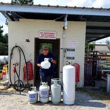 At our GA and SC locations we perform cylinder inspections, recertification if needed, and refilling of cylinders. This includes 20lb, 30lb, 40lb, 100lb cylinders, buffer cylinders and forklift cylinders. We also recycle cylinders that are in poor shape for a small fee. Always transport your cylinders in a secured and upright position.